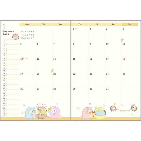 サンエックス すみっコぐらし ME67404 糸とじ手帳B6ウィークリー ME67404SGテチョウB6W
