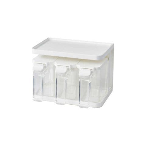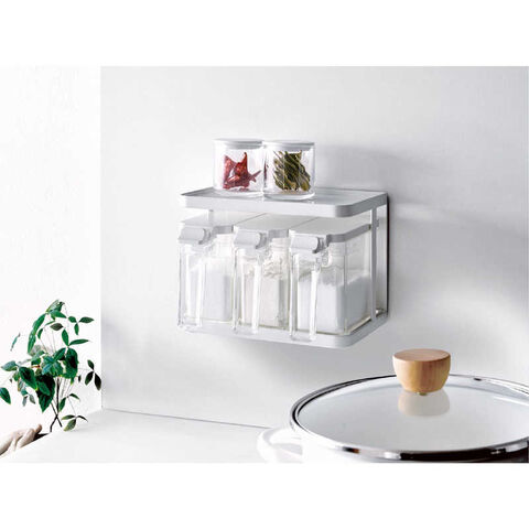 仕様3:材質:ラック/フレーム: 鉄(樹脂コーティング)・ラバーマグネット トレー: ポリスチレン スベリ止め(底部): EVA樹脂 スベリ止め(背面): ポリウレタン ポット/本体・フタ: ポリスチレン すり切り板・スプーン: ポリプロピレン プッシュレバー: ABS樹脂 バネ・パッキン: シリコーンゴム