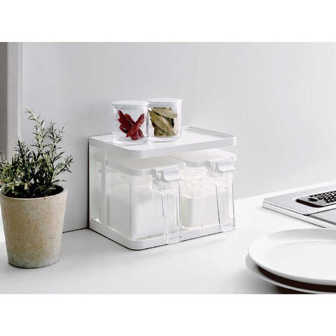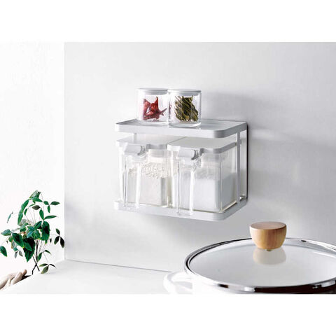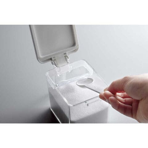 仕様3:材質:ラック/フレーム: 鉄(樹脂コーティング)・ラバーマグネット トレー: ポリスチレン スベリ止め(底部): EVA樹脂 スベリ止め(背面): ポリウレタン ポット/本体・フタ: ポリスチレン すり切り板・スプーン: ポリプロピレン プッシュレバー: ABS樹脂 バネ・パッキン: シリコーンゴム