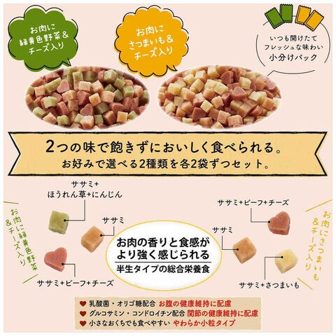 匂いと食感で肉の旨みをより感じられる、嗜好性が高い半生タイプの総合栄養食です。