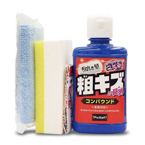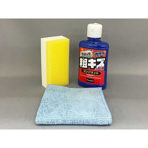プロスタッフ 洗車用品 コンパウンド 魁磨き塾 三兄弟 粗キズ長男 スポンジ×1個 マイクロファイバークロス×1枚 S188