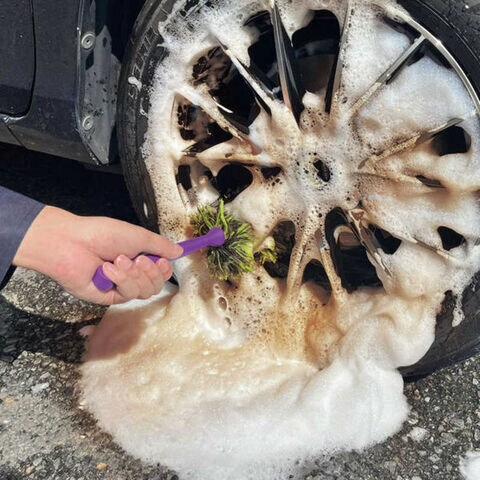 柄が長くブラシの範囲を短くすることでホイールのリムの内側の汚れを前後させ、短いストローク作業で集中して汚れを落とせます。