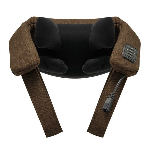 ●肩に乗せてボタンを押すだけで首肩フィットし本格的にマッサージ。
