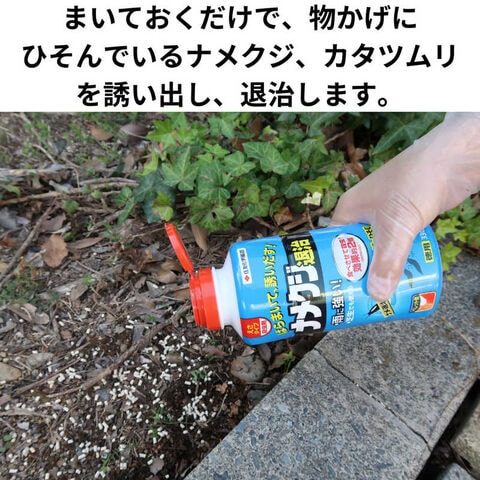 あらかじめまいておくだけで、物かげにひそんでいるイヤ~なナメクジ、カタツムリを誘い出し、食べさせて退治します。