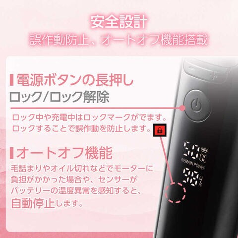 毛詰まりやオイル切れなどでモーターに負荷がかかった場合や、センサーがバッテリーの温度異常を感知すると、運転を自動で停止します。