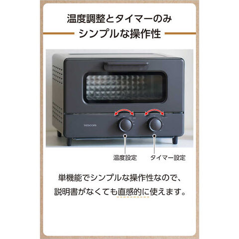 テスコム トースター 4枚焼き オーブントースター コンパクト 無段階温度調節 1200W タイマー30分 遠赤外線ヒーター 鉄製フレーム扉 パンくずトレイ付 ブラック TSB60A-K