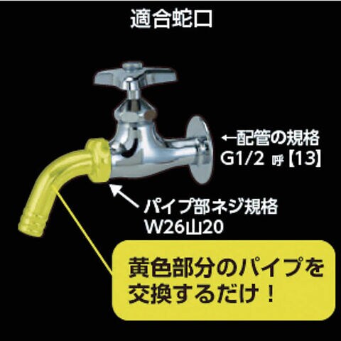 ●万能ホーム水栓のパイプを交換するだけで、ワンタッチでホースの接続ができます。