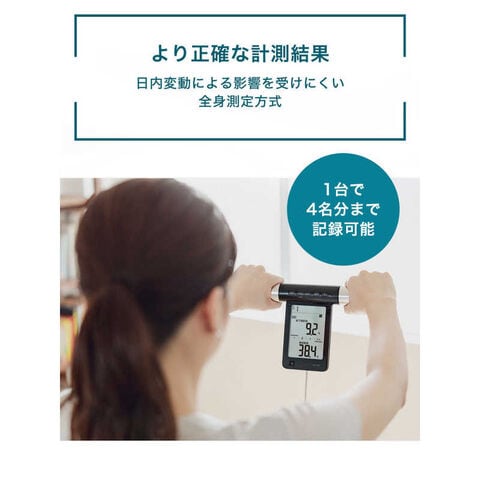 表示部を持ち上げて測定する両手両足タイプ。体型の違いや体内水分の日内変動による影響をうけにくく、より正確に測定できます。