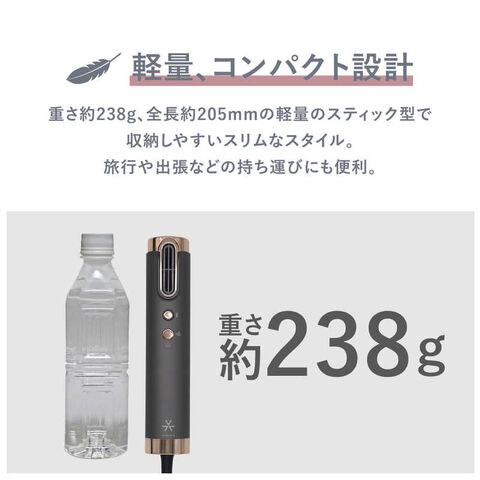 重さ約238g、全長約205mmの軽量スティック型で収納しやすいスリムなスタイル。