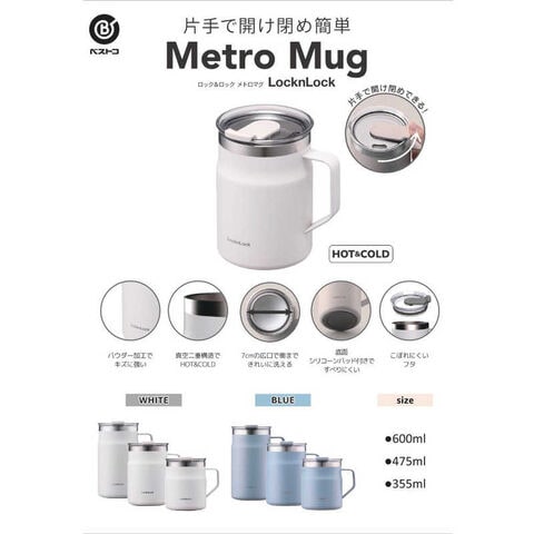 ベストコ マグカップ ふた付き 保温 保冷 ステンレス 600ml 大きめ ホワイト ロック&ロック メトロ LHC4282NWHT