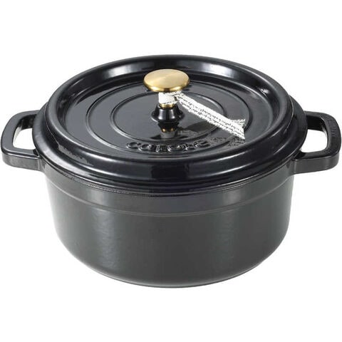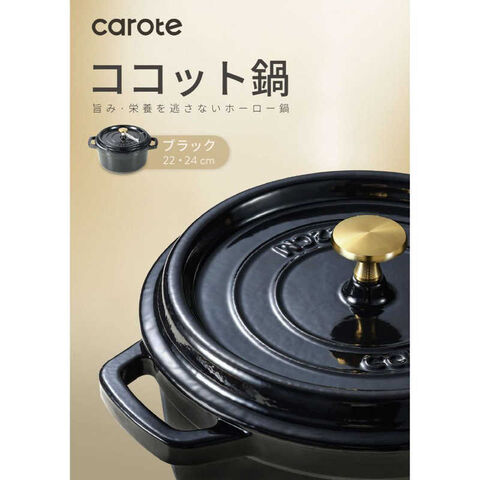 ベストコ CAROTE(カローテ) ココット鍋 24cm IH ガス火対応 鋳鉄 ホーロー 無水鍋 ブラック NM-5234
