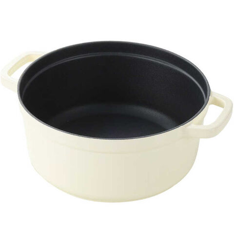 ベストコ CAROTE(カローテ) ココット鍋 24cm IH ガス火対応 鋳鉄 ホーロー 無水鍋 ホワイト NM-5235