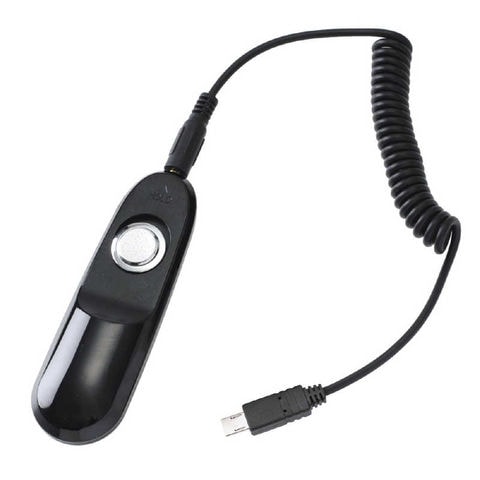 三脚使用時の必需品。外装は衝撃に強いポリカーボネート製でピアノブラックの光沢感ある仕上げ。コードはスパイラルケーブルを採用。手に馴染みやすい大型レリーズボタン。シャッターボタン半押し、バルブロック機構など基本的な機能を備えています。