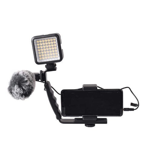 VLOGをこれから始めるあなたに、スマホとこのセットがあれば今すぐ撮影OK!VLOGスタートのためのマイク LEDライト ホルダー L型ブラケットマウントの4点セット。片手でラクラク、動きながらの動画撮影に。周りの雑音に惑わされず、マイクが狙った音を集音。配信動画に欠かせないライト。照明効果で再生回数UP!
