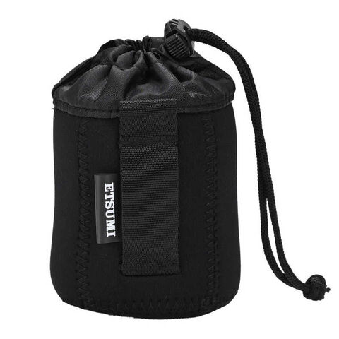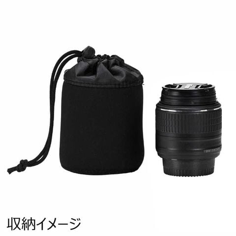 一眼レフカメラ・ミラーレスカメラ用交換レンズを衝撃やキズから守る、巾着タイプのレンズポーチ。