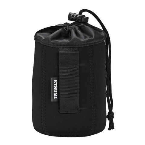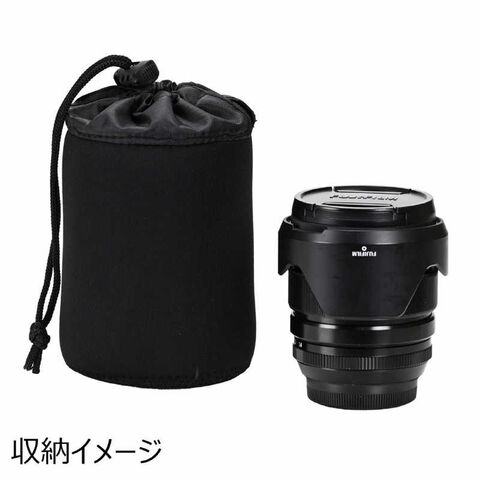 一眼レフカメラ・ミラーレスカメラ用交換レンズを衝撃やキズから守る、巾着タイプのレンズポーチ。
