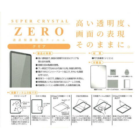 仕様1:[タイプ]光沢[エアーレス仕様]時間経過とともに気泡が消える[自動吸着仕様]吸着面にシリコン皮膜を使用[フッ素加工]なめらかな触り心地と快適な操作性[ハードコート加工]傷がつきにくいハードコート加工できれいな画面を護ります[防汚コート加工]皮脂などによる画面汚れを防止[材質]PET(吸着面:シリコン)