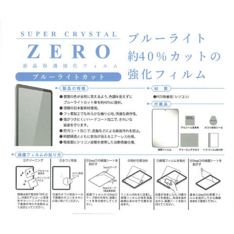 仕様1:[タイプ]ブルーライトカット(カット率約40%)[エアーレス仕様]時間経過とともに気泡が消える[自動吸着仕様]吸着面にシリコン皮膜を使用[フッ素加工]なめらかな触り心地と快適な操作性[ハードコート加工]傷がつきにくいハードコート加工できれいな画面を護ります[防汚コート加工]皮脂などによる画面汚れを防止[材質]PET(吸着面:シリコン)