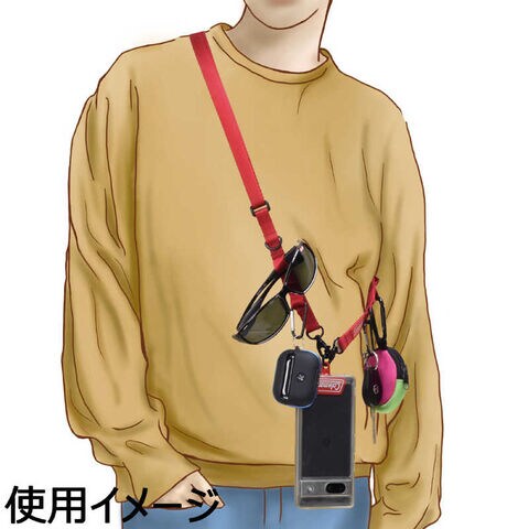 Colemanライセンスのスマートフォン用、多用途ストラップ。本体のDリングやループに、カラビナ、鍵、ポーチなどを自由に取り付けられます。アジャスター機能で首掛けからタスキ掛けまでシーンに合わせて長さを調節できます。