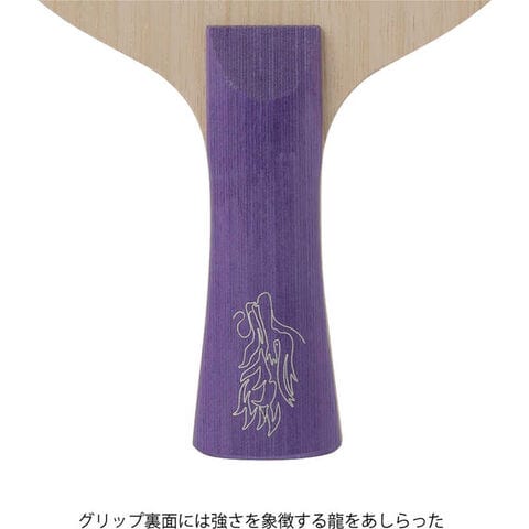 グリップエンドのプレートには孫穎莎選手の写真が埋め込まれ、裏面のグリップには力強いプレーを象徴する龍がデザインされています。