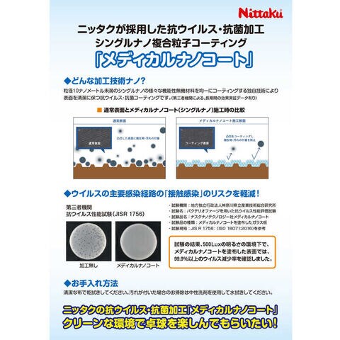 クリーンな環境で卓球を楽しんでいただきたい!ニッタクが採用した抗ウイルス・抗菌加工、シングルナノ複合粒子コーティング「メディカルナノコート」を施工したワンタッチ装着の硬式専用サポート。