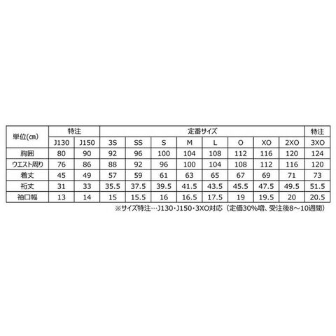 仕様2:【サイズ】S:胸囲100cm、着丈61cm、裄丈39.5cm、袖口幅16cm