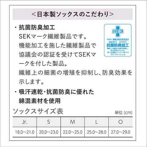 仕様3:※ニッタクソックス新サイズ規格対応品番:旧サイズ企画よりもサイズ幅を広く設定しております。(旧サイズ企画:M:23.0~25.0cm、L:25.0~27.0cm)
