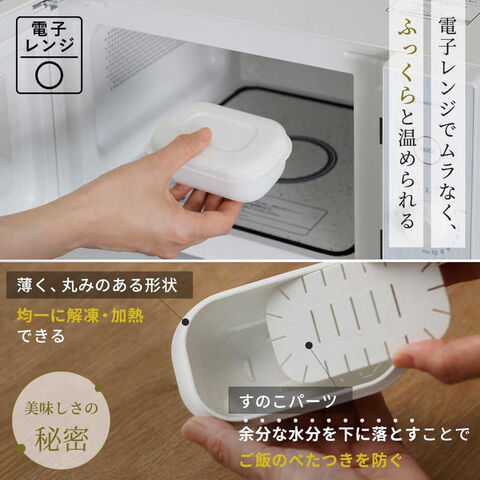 電子レンジで冷凍ご飯をムラなくふっくらと温められる保存容器です。