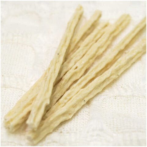 ●牛皮の繊維が歯に絡み付いて歯垢を除去