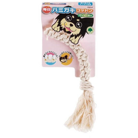 しっかり噛める、コットン100%。くわえやすい、スティック型のおもちゃ。