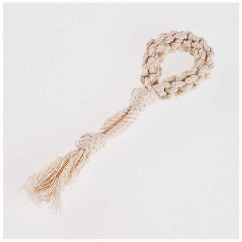 しっかり噛める、コットン100%。くわえやすい、ループ型のおもちゃ。