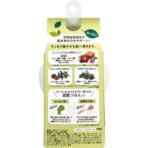 また、クルミ殻やオリーブ種子といった植物性のスクラブ成分も配合しており、肘やかかと等のしっかりケアを行いたい部分に石鹸で直接洗いすることで、さらにつるんっとした洗い上がりが期待できます。