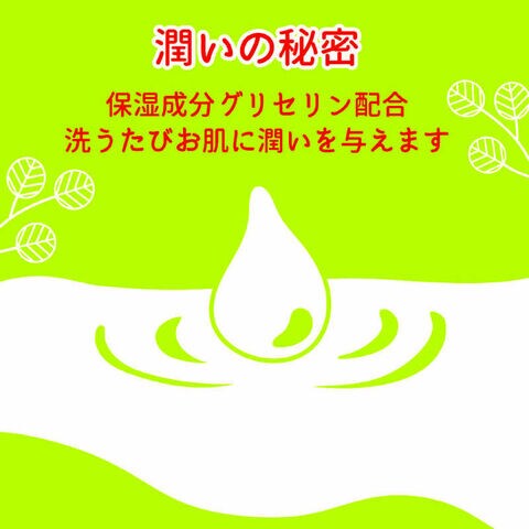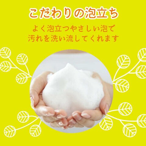 植物由来のよく泡立つふんわり泡で汚れを洗い流し、保湿成分のグリセリンを配合で洗うたびお肌に潤いを与えます。