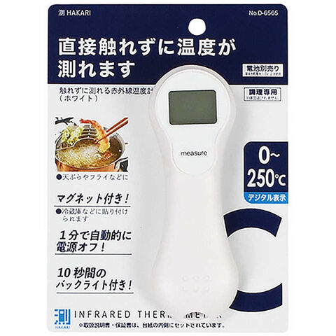 触れずに測れる赤外線温度計 0~250度 デジタル表示 マグネット付きなので冷蔵庫などにくっつけられます。 1分で自動的に電源オフ 10秒間のバックライト付