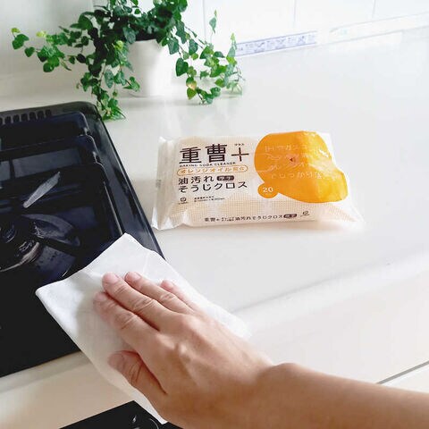 重曹水溶液を電気分解して出来る重曹電解水で汚れをしっかり落とします。