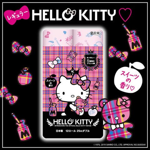 ・キティの生まれ故郷であるイギリスをイメージしたチェック柄がトレードマークのトイレットペーパー。