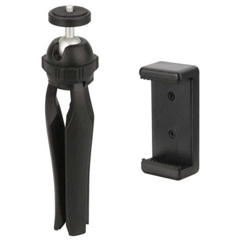 グリップとしても使えるミニ三脚と、スマートフォンを固定できるホルダーのセットです。