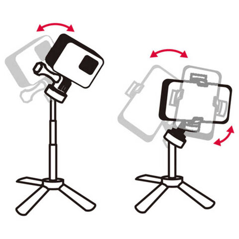 三脚としても、三脚の脚をたたんで自撮り棒としてもご使用いただけます。スマートフォン・アクションカメラ・コンパクトデジタルカメラに対応しています。