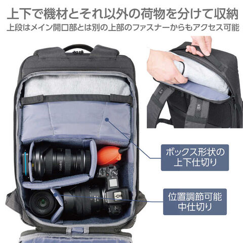収納の目安:一眼カメラと交換レンズ1本~2本、ブロアーなどのカメラアクセサリー+15インチ相当のノートPC