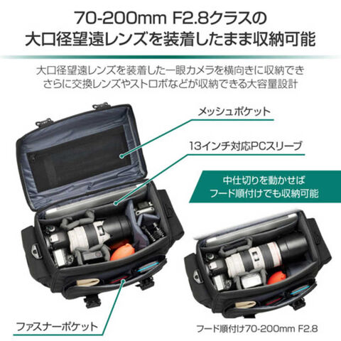 70-200mm F2.8クラスの望遠レンズを装着したまま収納可能な大容量ショルダーバッグ