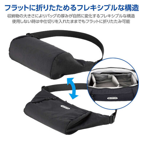 ラウンド型のシンプルなデザインでミラーレス一眼カメラと交換レンズを収納可能。