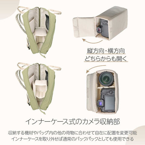 やさしい手触りで普段使いもしやすいインナーケース式のカメラバックパック