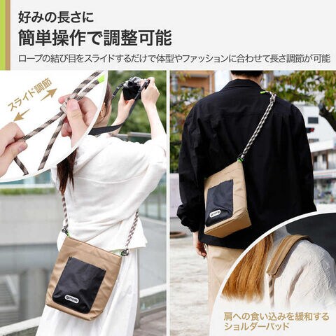 ロープ状のショルダーストラップと、ビビッドなアクセントカラーを散りばめた遊び心あふれるデザインは、フェスやキャンプなどアクティブなレジャーシーンにもぴったりです。