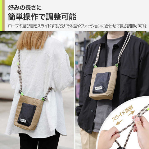 ロープ状のショルダーストラップと、ビビッドなアクセントカラーを散りばめた遊び心あふれるデザインは、フェスやキャンプなどのレジャーシーンにもぴったりです。