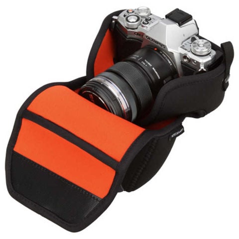 水に強く伸縮性とクッション性の高い5mm厚のクロロプレンゴムをクッション材に採用した立体構造のカメラジャケット。