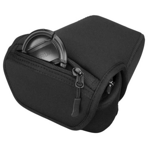 カメラの形状に合わせた立体構造で、スリムに持ち運びが可能です。 手に優しく、音が静かで開閉のしやすい面ファスナーを採用しています。