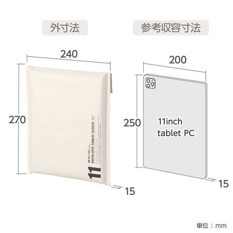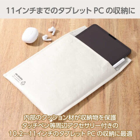 仕様1:[参考収容寸法]約W200×H250×D15mm(10.2~11インチのペンシル/キーボード付きタブレットPCの収納に適しています。)[外寸法]約W240×H270×D15mm[重量]約50g[材質]Tyvek(R)、ポリエステル[備考]・DuPont(TM)およびTyvek(R)は米国デュポン会社(E.I. du Pont de Nemours and Company)の商標、あるいは登録商標です。・素材の特性上、色移りすることがあります。