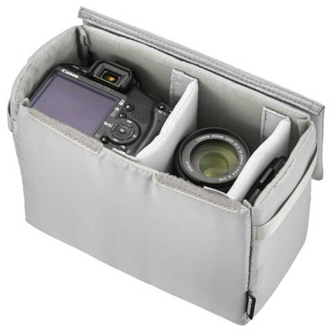 そのまま入れるだけでいつものバッグがカメラバッグに早変わり。全面の厚いクッションが機材をしっかり保護します。