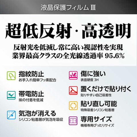 フィルム表面の「すり傷」や「爪あと」などが残りにくい表面硬度と保護力で液晶画面を美しい状態のまま保ちます。