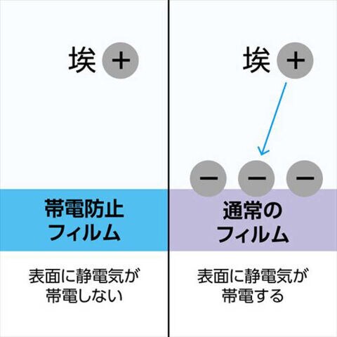 帯電防止効果により静電気の発生を抑え、液晶画面に埃や塵を寄せ付けません。